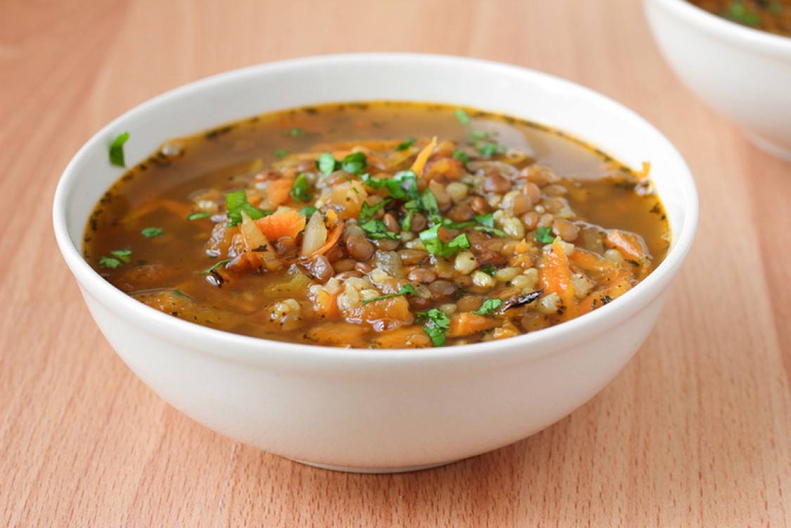 شوربة عدس مع الأرز البني