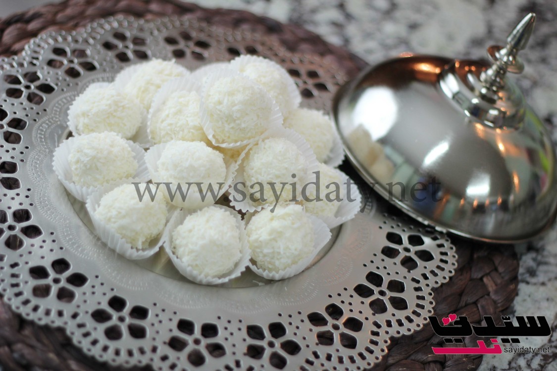 كرات جوز الهند بالشوكولاتة البيضاء واللوز خطوة بخطوة