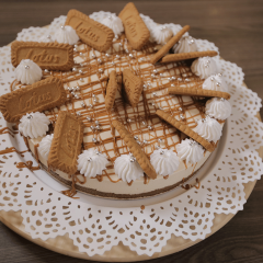 6. نزينها بزبدة اللوتس المذابة بالمايكرويف وبسكويت اللوتس المطحون وممكن استعمال أي نوع بسكويت.