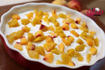 6. أدخلي الصينية للفرن لمدة 25 دقيقة ثم أخرجيها من الفرن واتركيها لتبرد وقطعي الحلى لمربعات متوسطة وقدميها.