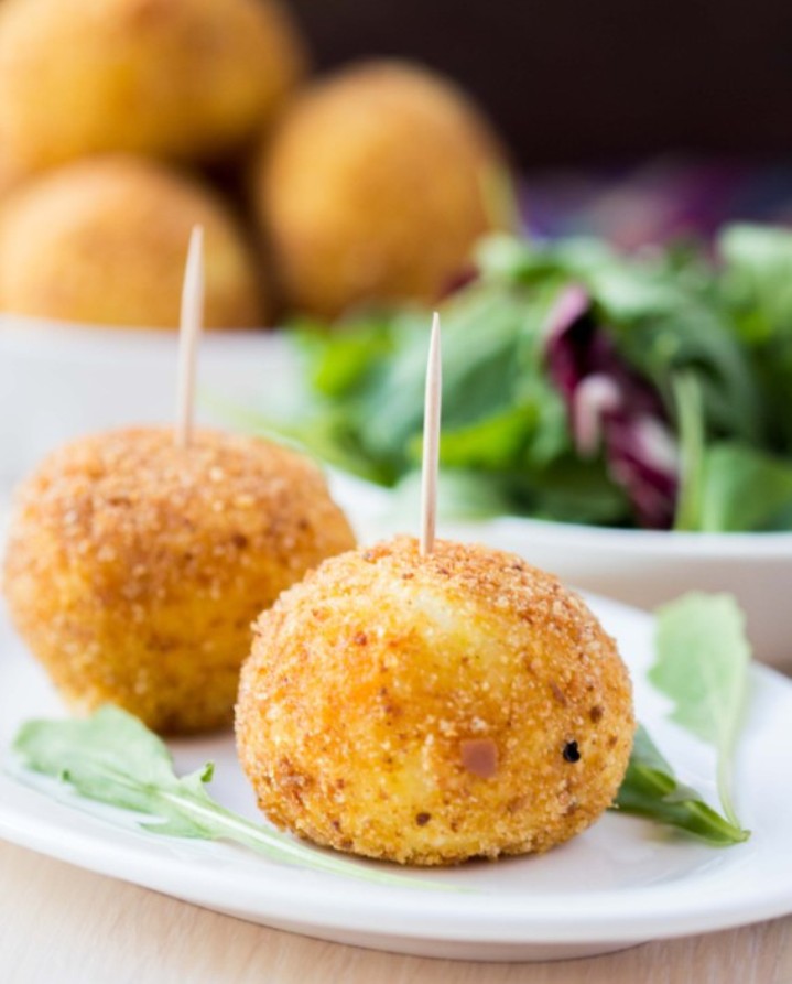 7. تُغمس كرات الأرز، بعد ذلك، في المزيد من البقسماط الناعم، وتترك في البراد لمدة 10 دقائق، ثم تُقلى في زيت غزير وساخن.