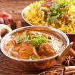 5. نضع لحم الريش في طبق التقديم ونضع فوقها صوص الكاري وتقدم ساخنة.