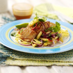 1. تُقطَّع شريحتا السلمون إلى مكعبات صغيرة.