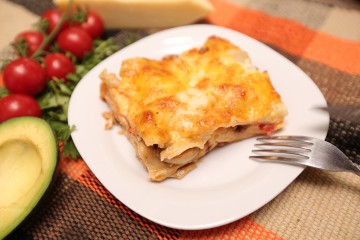 4. تسلق اللازانيا، ثم توضع طبقة رقيقة من الباشميل في صينية، ثمّ ترص قطع اللازانيا، ويوضع خليط اللحم عليها، ثمّ تضاف طبقة من صلصة البشاميل، تكرر العملية حتى الانتهاء من الكمية، ثم تضاف الكمية المتبقية من البشاميل، الجبنة الموتزريلا على السطح.