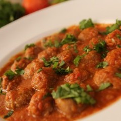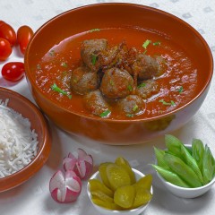 2. في قدر على النار ضعي الزيت ثم اضيفي البصل والثوم ثم اضيفي صلصة الطماطم والطماطم المفرومة واتركي الصلصة حتى تتسبم ثم نكهي بالملح والفلفل الاسود والبهارات المشكلة واضيفي كرات اللحم المقلية.