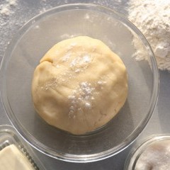 4- إدعكي العجينة على سطح صلب فوقه القليل من الدقيق لحوالي 3 دقائق.