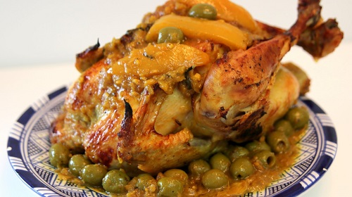 - ُضاف شرائح اللّيمون بعد خمس دقائق، والليمون المبشور، والزيتون، ويُترك الخليط على النار حتّى يغلي، ثمّ تخفض درجة الحرارة، وتُغطّى الطنجرة نصف ساعة. تقدّم ساخنة مع الأرزّ بالشعيريّة.