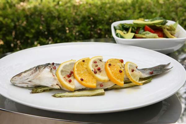 6. تقدّم السمكة مع السلطة و عصير الحامض.
