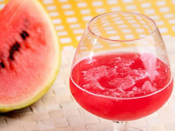 1. في الخلاط الكهربائيّ، يضرب كلّ من قطع البطيخ وأوراق النّعناع.