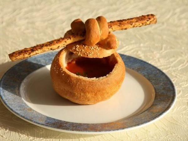 4. يصبّ الحساء في الخبز، ويزيّن بالبقدونس، ويقدّم ساخناً.