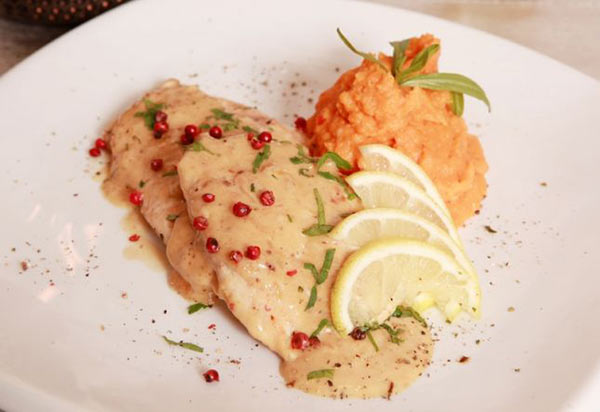 3. للتقديم: زيّني طبق الدجاج بشرائح الليمون الحامض، وأوراق الصعتر الأخضر، وقدّميه ساخناً، مع البطاطس الحلوة المهروسة.