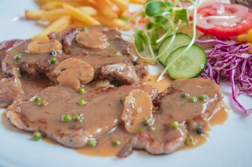 - أضيفي اللحم وتبلي بالملح والفلفل وقلبي اللحم على نار عالية لمدة 3 دقائق حتى يصبح بني اللون.