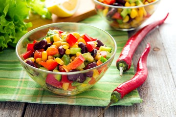 - ضعي الخس، وشرائح الزيتون الأسود، والطماطم، والذرة، والفاصولياء الحمراء، والفطر، في طبق وحركي المكونات حتى تتجانس وتختلط جيداً مع بعضها البعض.