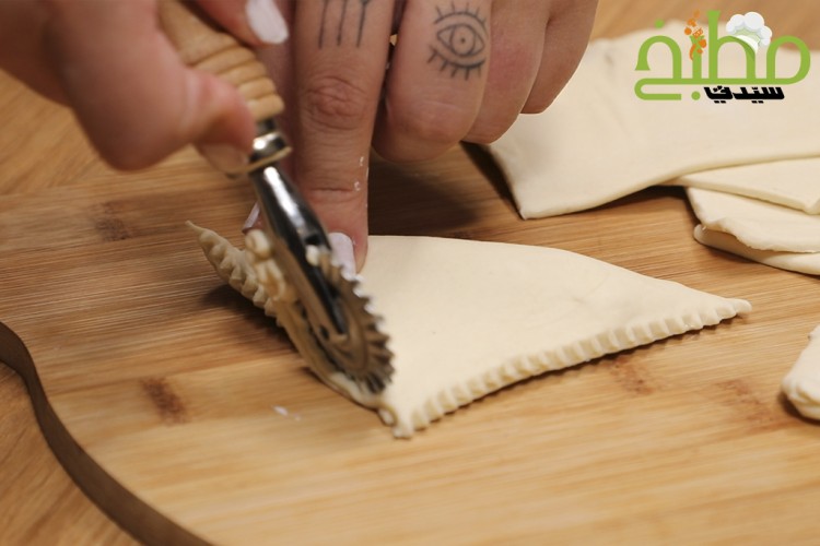 أحكمي إغلاق العجينة على الحشوة باستخدام القطاعة المسننة