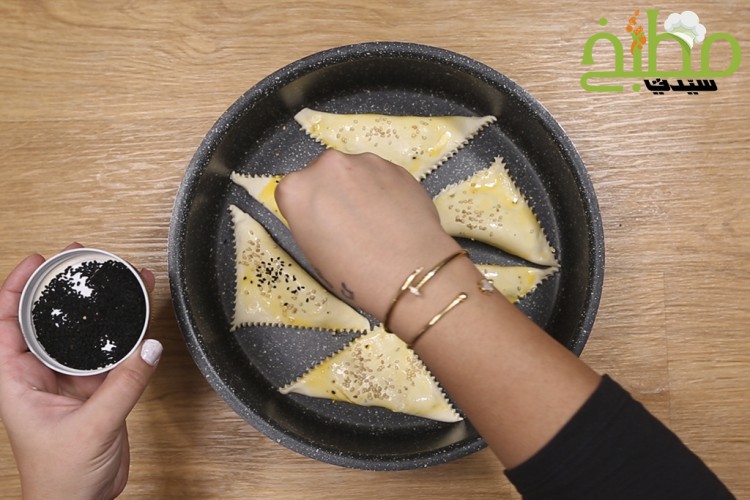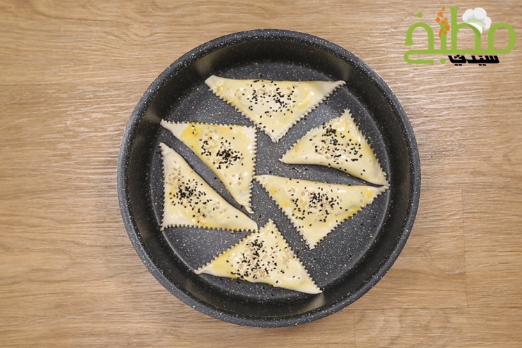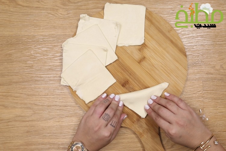 أغلقي العجينة على الحشوة بالشكل المثلث