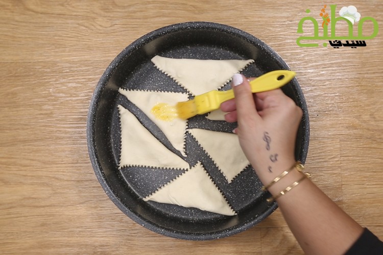 ضعي الفطاير بصينية الفرن، وادهني وجه الفطاير بالبيض المخفوق