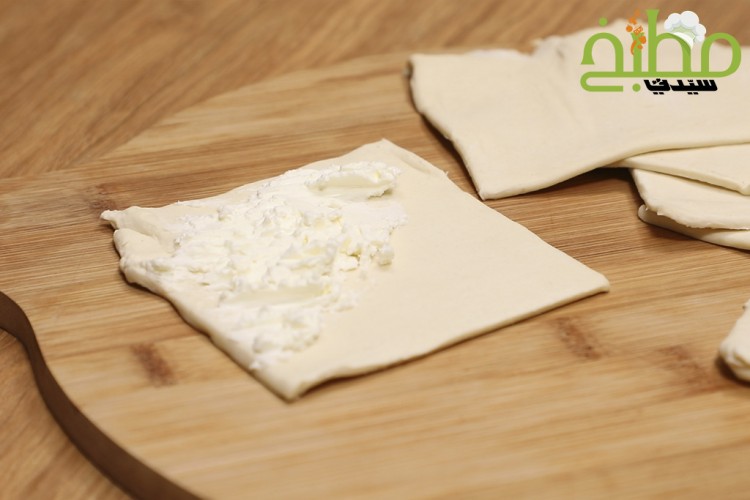 ادهني جبن الفيتا على قطع عجينة البف باستري