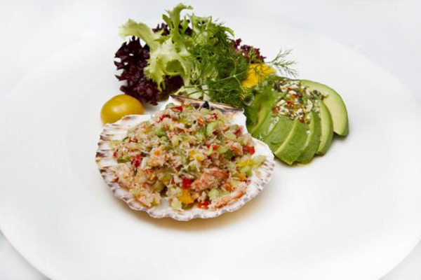 1. تقطّع جميع المكوّنات (لحم السلطعون بعد طهوه على النّار جيّداً، والفلفل بألوانه، والخيار، والبندورة، والأفوكادو) إلى مكعّبات صغيرة الحجم. تخلط بزيت الزيتون والحامض والصلصة الإيطاليّة، ويُنثر الملح عليها.