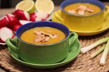 - اطحني الشوربة في الخلاط حتى يصبح المزيج ناعماً وأعيديه للقدر وسخنيه وقدميها ساخنة.