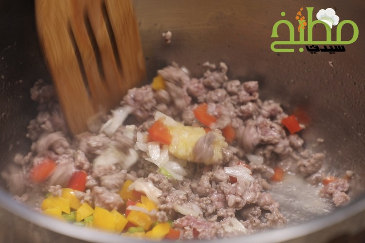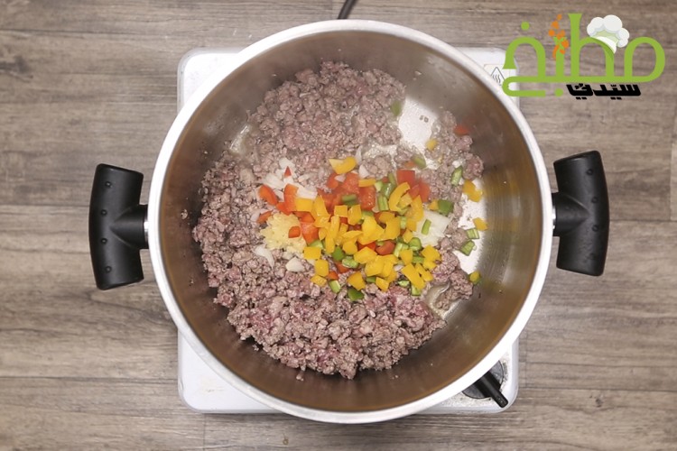 - فليفلة ملونة : ثلاث أرباع الكوب (خضراء / صفراء / حمراء / مفرومة)