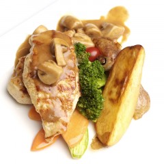- توضع صدور الدجاج في الطاسة الجريل وتترك حتى تأخذ لون ذهبي.