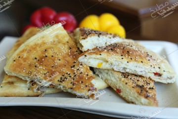 - قطعي الفطيرة وقدميها ساخنة إلى جانب السلطة حسب الرغبة.