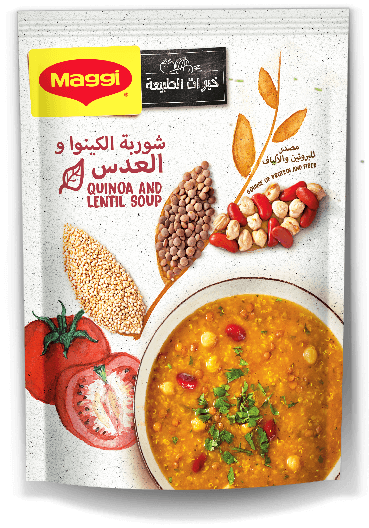 جمّعت "ماجي" شوربات غنية بالطعم الشهي، والفائدة الصحية، من خيرات الطبيعة من جميع أنحاء العالم، فوضعت حبوب الكينوا التي يتم جمعها بعناية وتجفيفها بالطريقة التقليدية الطبيعية لتحافظ على كل الجودة، مع إضافة العدس والأعشاب الطبيعية، للمزيد من الفوائد والتغذية، وإضافة لمسة خفيفة بالقليل من الفاصولياء الغنيّة بالألياف والمعادن والبروتينات لطعم أكثر غنى، وحتى يكتمل الطعم الساحر والفائدة أضافت "ماجي" الحمص والطماطم.