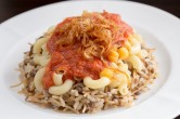 - اسلقي المكرونة ثم صفيها وضعي عليها معلقتين من زيت تحمير البصل.