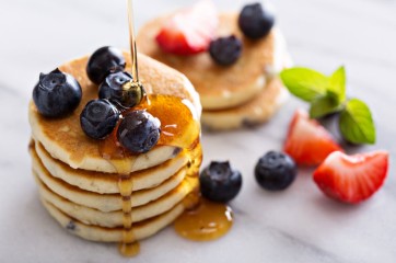 - كرري العملية حتى نفاذ كمية الخليط وقدمي البان كيك ساخناً وزينيه بالفاكهة.