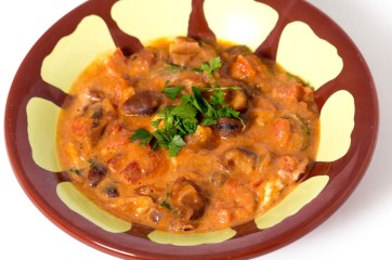 - زيدي الطماطم ونصف كوب من الماء. نكّهي بالملح، الفلفل الأسود، الكمون والكزبرة، خفّفي النار وغطّي القدر. اطهي المزيج لمدة 5 دقائق.