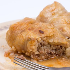 - وزعي الخليط على أوراق الملفوف ولفيها رولات.