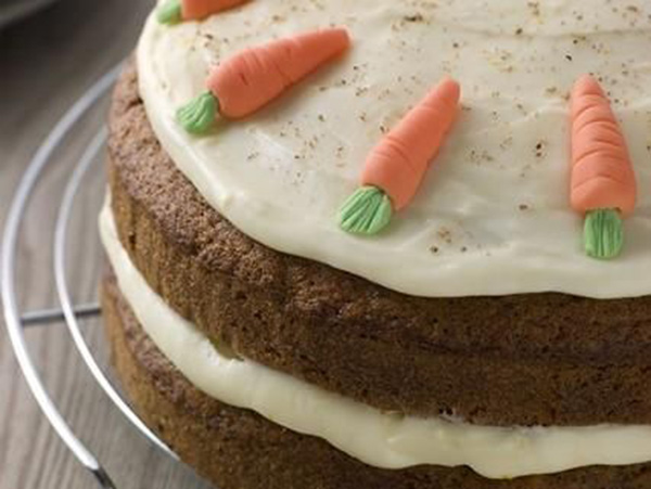 3. يخفق البيض مع قطع الفانيليا والقرفة، ثم يسكب الزيت تدريجياً مع الخفق المستمر، ثم يضاف الدقيق و"البايكنغ باودر" والسكر والجزر، ويسكب هذا الخليط في قالب الخبز المحضّر سابقاً، ويوضع في الفرن لمدة 40 دقيقة.