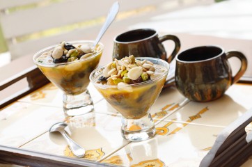 - نضع المعصوب في طبق التقديم ونضيف عليه القشطة والعسل ونزينه بالموز والكورن فليكس.