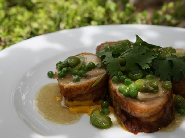 5. يضاف إلى الطبق خليط الخضر، ويزيّن بأوراق الكزبرة الخضراء (الكمية المتبقية) ومرقة الدجاج والكمون والحامض.