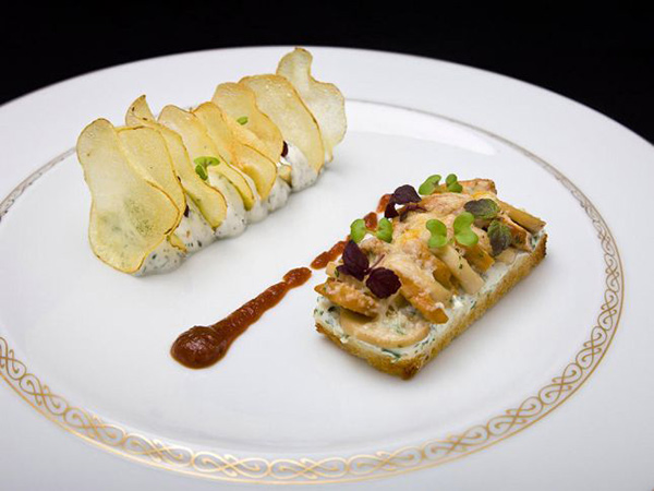 5. طريقة التقديم: يقطّع "التوست" إلى 4 مستطيلات، ويحمّص جيّداً. ثمّ تُدهن قطع التوست بكريما الأعشاب ويوضع عليها الفطر المحمّر وتنثر "البارميزان". ثمّ يتمّ إدخالها إلى الفرن للتحمير. تصفّ شرائح البطاطس فوق الكريما بالأعشاب، كما هو واضح في الصورة، يجاورها مربّى البندورة.