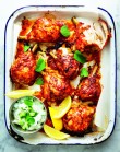 - أخرجي الدجاج من الفرن وقدميه ساخناً إلى جانب الأرز الأبيض.