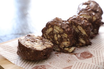 - كسري البسكويت لقطع متوسطة إلى صغيرة وأضيفي البسكويت للخليط السابق مع الفول السوداني المحمص واخلطي حتى تتجانس المكونات.