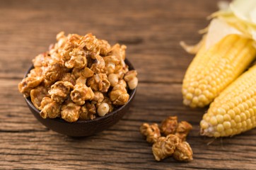 - أضيفي الفشار المحضر والزبدة وقلبي المزيج وقدميه.