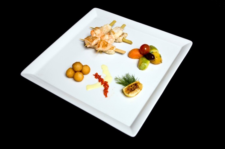يتبّل الروبيان وسمك السلمون والهامور في وعاء يحتوي على خليط من الملح والفلفل الأبيض وعصير الليمون والثوم وزيت الزيتون.يوضع هذا الوعاء، بعد تغطيته، في البرّاد لمدة تتراوح ما بين الساعة والساعة ونصف.توزّع ثمار البحر على أسياخ الخشب، وتشوى الجانبين لمدّة تتراوح ما بين 5 الى 10 دقائق.
