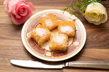 - قومي بإضافة القطر بعد أن يبرد إلى البسبوسة مباشرة بعد إخراجها من الفرن وهي ما زالت ساخنة.