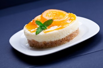 - يغلّف قالب دائري (بحجم 23 x 7.5 سنتيمترًا) بورق الخبز؛ يسكب الخليط، فيرتّب. يوضع القالب فوق صينيّة تتجاوزه حجمًا، مملوءة بالماء حتّى سنتيمترين منها. تخبز الصينيّة في الفرن الساخن، وذلك لـ25 دقيقة.