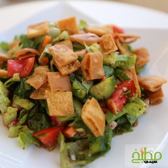 - قلّبي المكونات بتأنٍ حتى تتداخل ثم وزّعي الخبز المحمص على وجه الفتوش قبل التقديم.