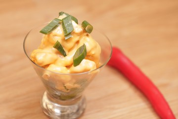 - أضيفي مكونات الصوص على حبات الروبيان المقلية، وقدميها ساخنة على السفرة.