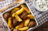 - ضعي الدجاج مع البطاطس والجزر في صينية فرن.