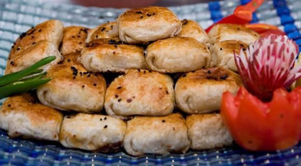 4. ضعي الحشو المحضر سابقاً في وسط كل دائرة، ثم أطوي الأطراف حتى تغلفي الحشو جيداً.