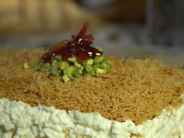 4. يزيّن سطح العثملّية بالقشدة والفستق الناعم وزهر الليمون.