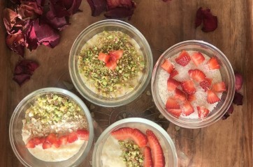 - ضعي المزيج في أطباق وزيني باللوز المفروم والموز والعسل وقدميه دافئاً.