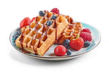 - وزعي كمية مناسبة من الخليط على آلة الوافل واطهيه لمدة 4 دقائق على كل وجه.