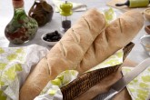 - قطعي خبز الباغيت إلى شرائح متساوية الحجم متوسطة السماكة ثم صُفيها في صينية فرن مدهونة بالقليل من الزبدة.
