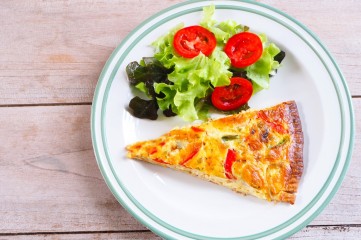 - في وعاء، امزجي البيض والحليب والملح والفلفل ثم اسكبيه فوق الخضار.